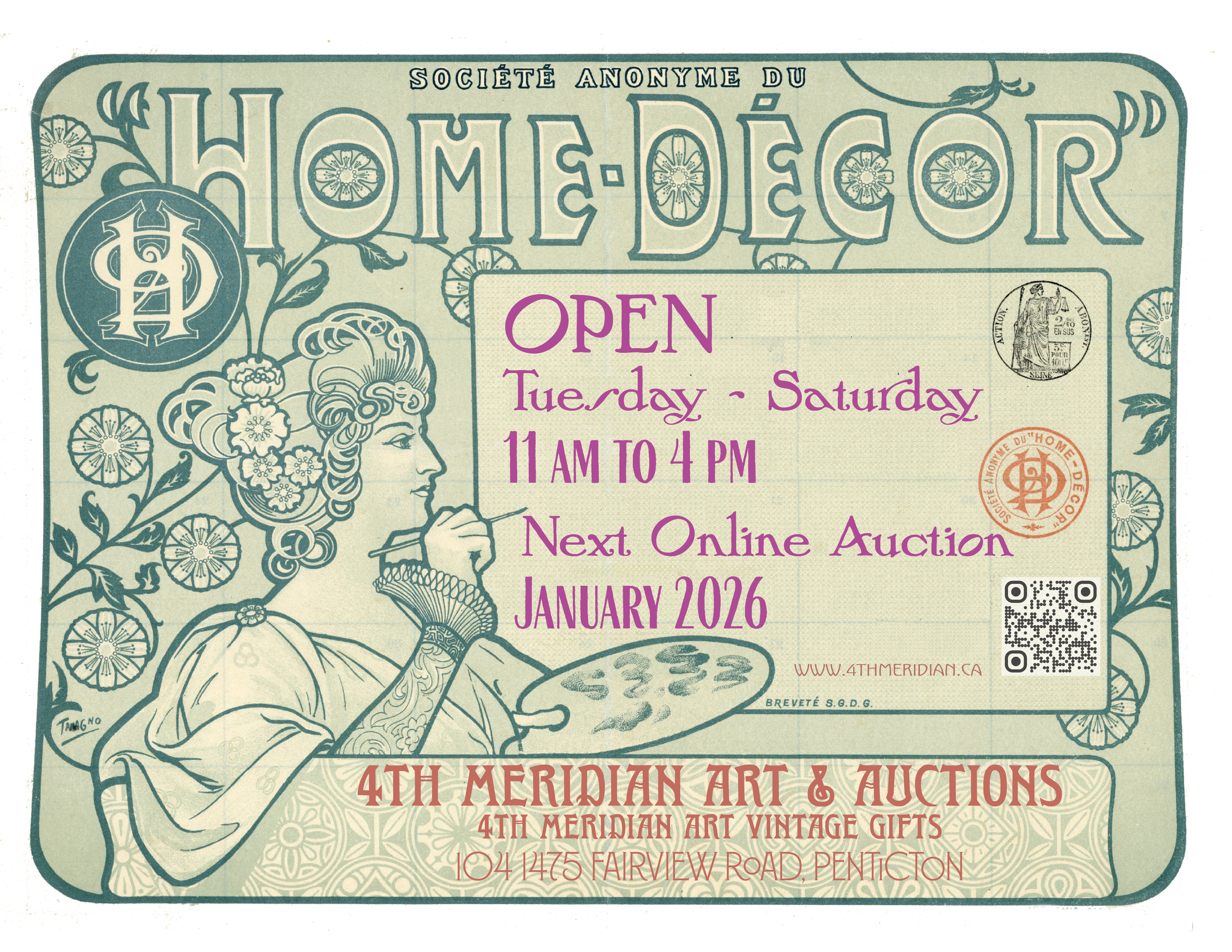 Sign up for notifications below, and visit us in the Cannery Trade Centre Tuesday - Saturday 11-4 for auction previews plus an entire shop full of art, textiles, collectibles, prints and cards.