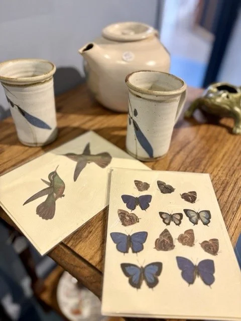 Visit us for: pottery, glassware, greeting cards, framed vintage art prints, original fine art and books. Plus many vintage curiosities and useful items to accent your interior spaces.